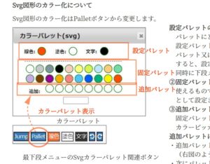例2.はMy Noteの使用説明として準備しているものでSvg図の描画でのカラーパレット画面の使い方について画面に付加する形で説明書きを入れています。